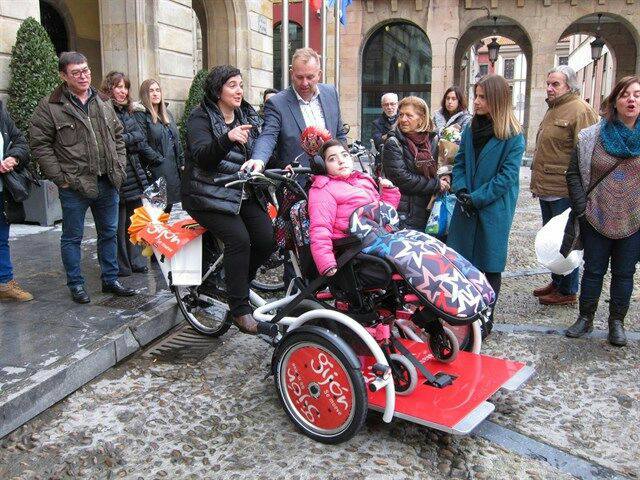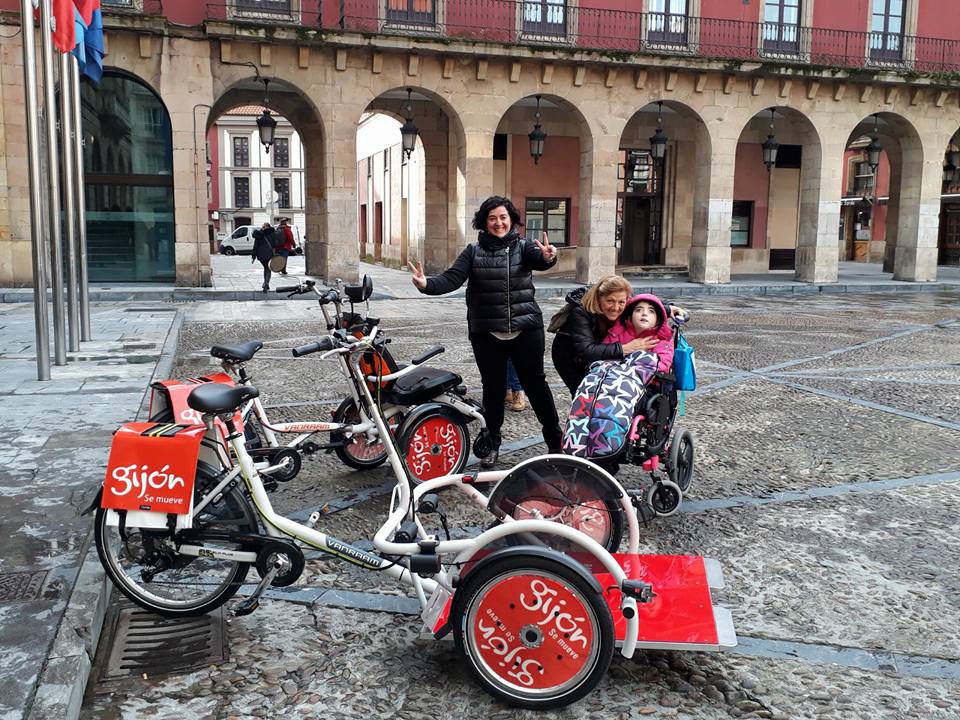 Paula Fernández prueba las primeras bicicletas adaptadas de Gijón.